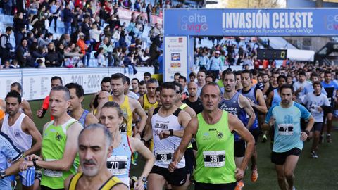 En categoría absoluta se impusieron Ester Navarrete, que revalidaba victoria, y Gonzalo Basconcelo, que en el 2014 había sido cuarto. Antes o después que ellos, y mientras sonaban los temas clásicos de Balaídos y con el presidente Mouriño como testigo, fueron cruzando la meta durante toda la mañana los corredores de las diferentes categorías hasta completar una nueva invasión (celeste).