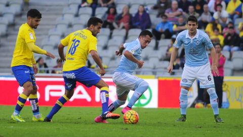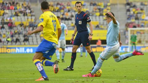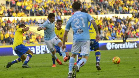 01 feb 2016 . Actualizado a las 08:43 h.El Celta llegó al estadio de Gran Canaria con la cabeza de vuelta en la Liga tras la clasificación para semifinales en la Copa del Rey. Con las rotaciones justas, el Toto quería demostrar la importancia de la competición después de las cuestionadas rotaciones en Vallecas. Un gol tempranero de Bongonda a los cinco minutos ponía el viento a favor. El Celta estaba siendo contundente en sus llegadas a la meta de Javi Varas, pero ninguno de los dos conjuntos conseguía llevar el control del partido. Minutos de ida y vuelta constantes en los que los vigueses trataban de imponer su calidad ante un conjunto insular que comenzaba a generar peligro y necesitaba sumar para salir del descenso. William José disparaba desde fuera del área un balón que golpeaba en el larguero a los 20 minutos. Primer aviso. Minutos después, tras un saque de falta del conjunto amarillo, el linier señalaba un más que discutido penalti por mano de Cabral que ponía la igualada en el marcador. Los vigueses no conseguían llevar la manija del partido, incómodos y en un contexto completamente imprevisible llegaban al descanso.