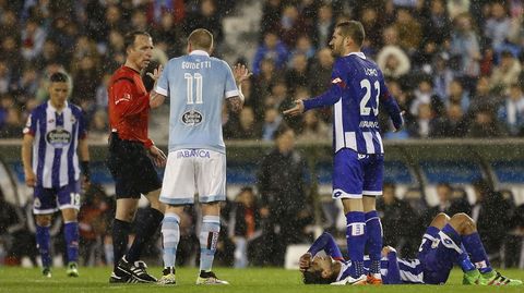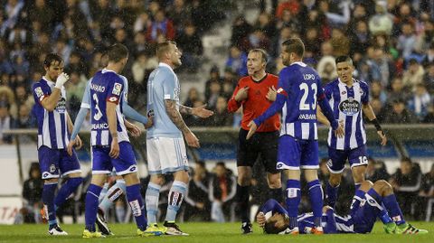 Los del Toto trataron de asumir el control de la pelota y marcar los tiempos en el inicio, pero no se encontraban cómodos frente a un Deportivo perfectamente adaptado a su papel de visitante y que supo sacar rendimiento de la incomodidad celeste. Como ejemplo, Jonny y Wass tuvieron que convivir con sendas amarillas desde el primer cuarto de hora.