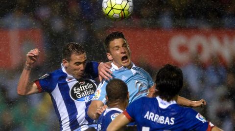 03 abr 2016 . Actualizado a las 05:00 h.Los derbis son otra historia. Cuenta el fútbol, cuenta el estado de forma, pero también cuenta el nerviosismo. Y ese fue el primer obstáculo, amén del rival, que se encontró el Celta en la visita del Deportivo. Los vigueses cargaron sus espaldas con una responsabilidad excesiva -Europa, el eterno rival y la derrota del encuentro de ida- y tardaron en llevar su juego a Balaídos. Para cuando lo hicieron, sacaron todo el arsenal ofensivo, pero ayer la pólvora estaba mojada.