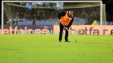 Fue la última semana de noviembre, con Granada y Standard visitando Balaídos, y con la lluvia haciendo acto de presencia a lo grande tras semanas de ausencia, cuando el campo presentó su peor imagen, haciendo que Royal Verd, la empresa encargada de su colocación y mantenimiento, tomase medidas.