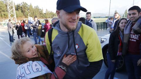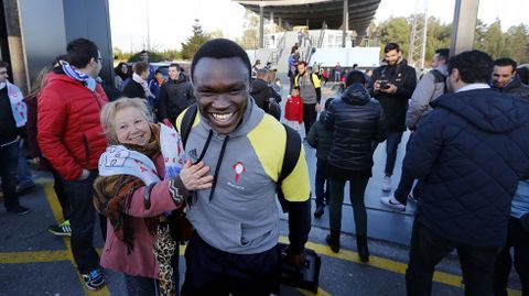 A su llegada al aeropuerto vizcaíno de Loiu, el vuelo chárter del conjunto vigués fue recibido por un grupo de aficionados célticos de las peñas vascas y burgalesa. Una avanzadilla de los muchos que esta noche se darán cita en el viejo campo del Glorioso para vivir una noche histórica.