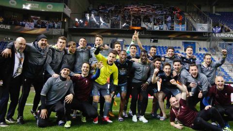 Hugo Mallo y el resto de la plantilla, eufóricos por haber escrito una nueva página en la historia celeste