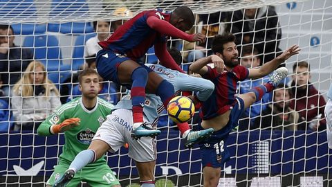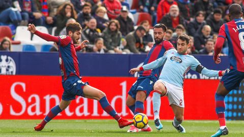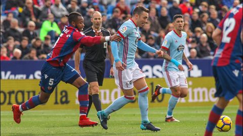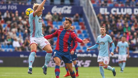 Unzué cortó el chaparrón incorporando al partido a Radoja y Brais. El serbio, como hiciera en sus últimas apariciones desde el banquillo, sumó para recuperar el balón y encontrar una pausa en un partido cuesta arriba. Aun así, no pudo impedir las dos últimas ocasiones levantinistas, ambas clarísimas. Un remate de cabeza de Boateng que salió alto y otra todavía más diáfana de Coke en el minuto 92. El ex del Sevilla se encontró con un regalo en la parte derecha del área pero cruzó el balón demasiado y permitió al Celta respirar tranquilo. Su colchón con el descenso ya es respetable y desde la mitad de la tabla se remanga para luchar por Europa en la segunda vuelta.