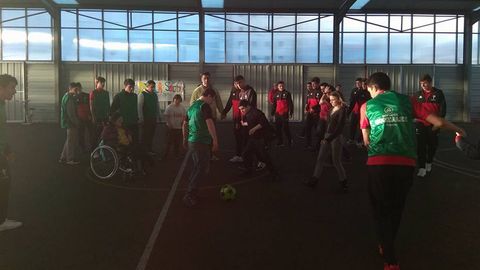 El Benjamín A, por su parte, vivió una jornada de convivencia con los componentes del equipo céltico de personas con discapacidad, el Celta Integra. Ambos conjuntos compartieron merienda, charlas sobre integración y muchos momentos de diversión y aprendizaje para finalmente disputar también un partido de fútbol.