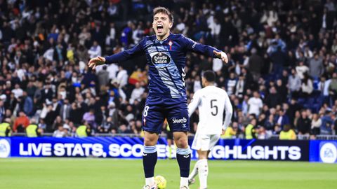 El Celta, con Óscar Mingueza como único superviviente del partido de Copa, salió a enseñar los dientes. Durante los primeros minutos, tuvo el balón, lo tocó con criterio y buscó la verticalidad, especialmente, por la banda izquierda con Bryan Zaragoza. Además, montó su línea defensiva a la altura de la divisoria con los diez jugadores de campo en un margen de 20 metros. Ese riesgo inicial desactivó la oleada inicial de los blancos, que con el paso de los minutos, fueron monopolizando el balón para instalarse en campo contrario. Su primera ocasión fue un saque de córner cabeceado por Bellingham y al que respondió Andrei Radu con un paradón.
