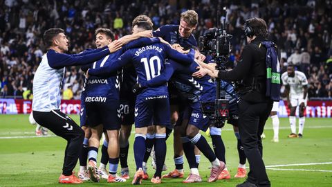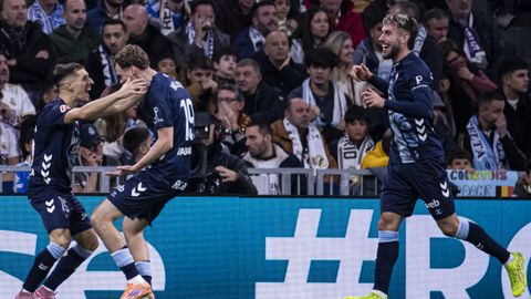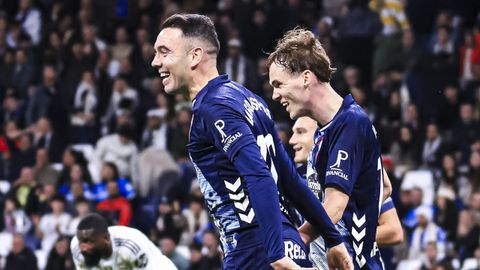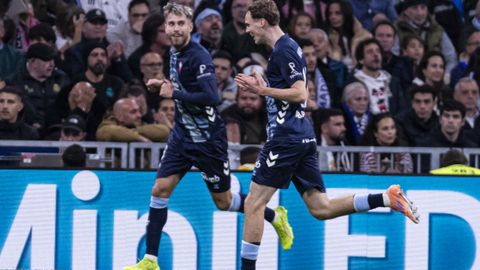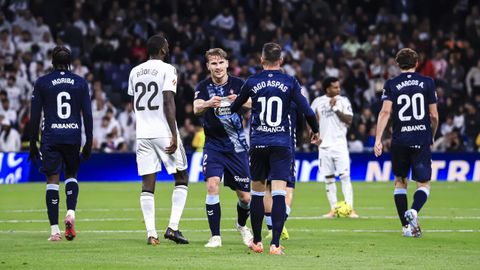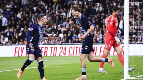 Valentía para tener el balón y atacar siempre que fuera posible y capacidad de sufrimiento para sobrevivir en bloque bajo cuando el Real Madrid, con toda su constelación en el campo, decidió monopolizar el balón y acorralar al rival. El cuadro celeste sobrevivió al primer tiempo del Bernabéu con buena nota e incluso tuvo opciones para adelantarse en el marcador en un par de contras finalizadas por Pablo Durán, que en la más clara, estrelló con Courtois en el mano a mano tras una excelente pase al espacio.