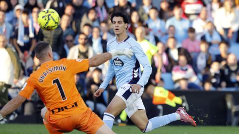 A diferencia del jueves, el tanto le sentó de maravilla a los vigueses, que pudieron dar un segundo zarpazo dos minutos con un balón de Aspas a la espalda de la defensa que Jones no concretó. Cruzó demasiado el esférico. Pero en la siguiente aparición el noruego que juega para Marruecos no falló. Javi Rueda (que dio las dos asistencias del partido) metió un balón al espacio, Jones le ganó la posición a Vivian y cuando vio de cerca a Unai Simón acertó con un disparo cruzado que entró pegado al palo.