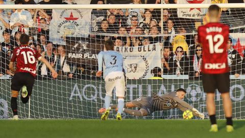 Entonces Claudio refrescó al equipo con Carreira e Ilaix y el vigués cometió penalti sobre Iñaki Williams en la primera jugada. Lo señaló el VAR por un contacto cuando intentaba despejar el balón. Nico Williams le pidió permiso a su hermano para chutar desde los once metros, pero Radu le adivinó el lado y paró el balón en dos tiempos. Entonces el partido entró en un tramo valle en el que apenas pasaba nada. El Celta se defendía con orden y el Athletic tenía el balón pero apenas hacía daño más allá de los centros laterales. La mejor ocasión de los bilbaínos la tuvo Izeta al enviar un balón al palo, era el minuto 81 y todo lo demás del equipo de Champions fueron fuegos de artificio. A la contra, el Celta pudo cerrar el partido antes de tiempo, especialmente en una ocasión de Borja Iglesias tras un excelente servicio de Hugo Álvarez, pero el disparo del Panda no cogió portería.