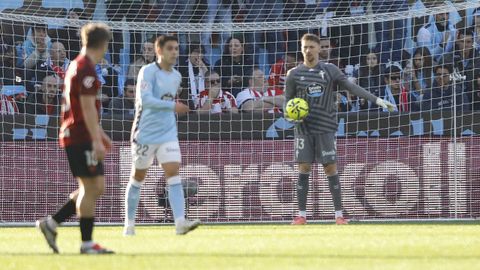 El Celta, respondió con paciencia. Decía Claudio en la previa que ante equipos de este calado físico la clave estaba en saber defender para luego poder responder en ataque y aunque los vigueses cometieron más de una imprecisión con el balón en la salida, fueron capaces de irse al descanso con su portería a cero. Y en realidad, Radu tampoco tuvo ninguna intervención comprometida.