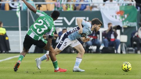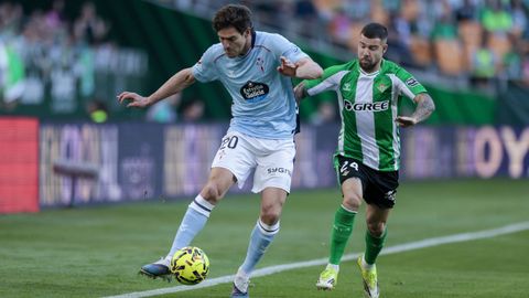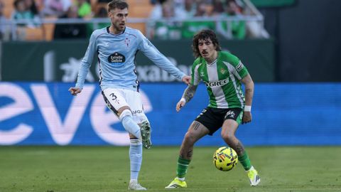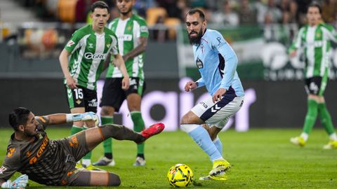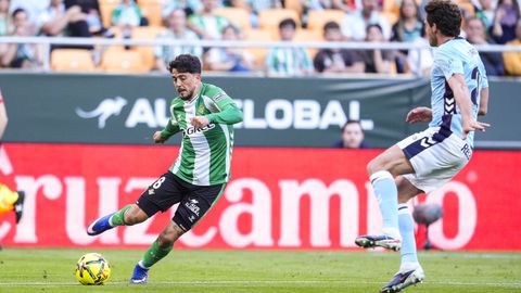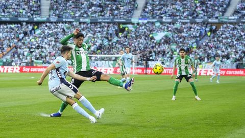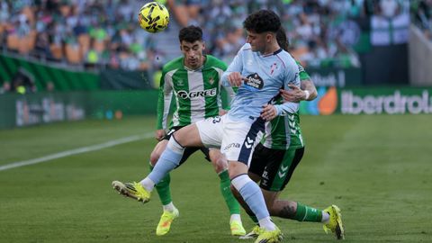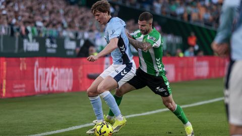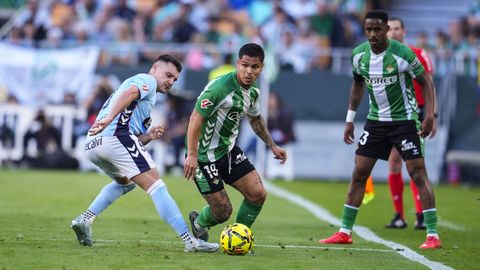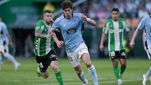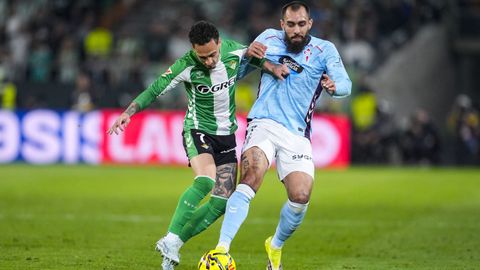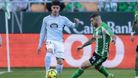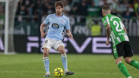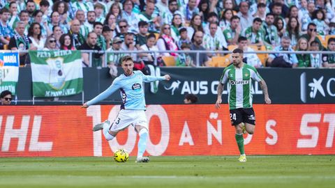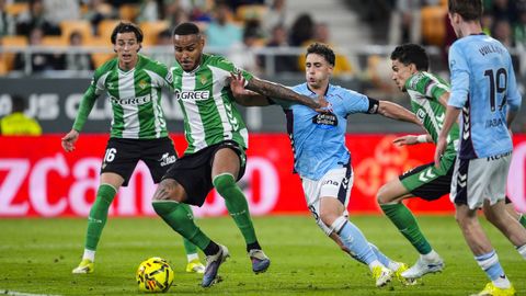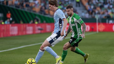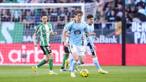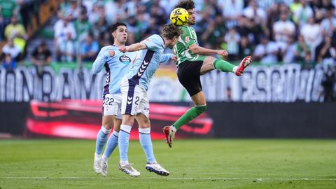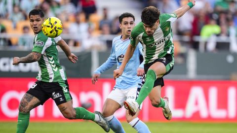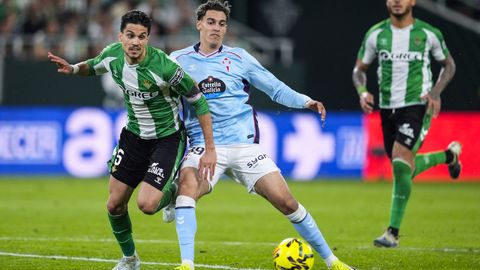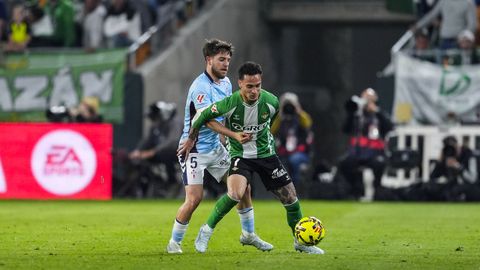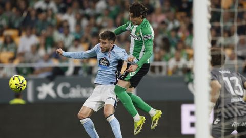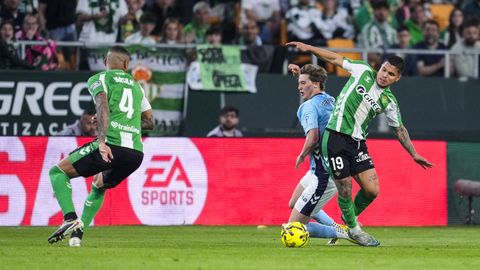 El tanto, a los tres minutos, reforzó el plan valiente del Celta, que se sintió cómodo quitándole el balón a un Betis que solo podía vivir de las transiciones. Por ese camino tuvo el cuadro vigués dos opciones para doblar la ventaja, pero no acertó en ninguna. Primero, con una salida de balón de Óscar Mingueza -en el carril izquierdo-, con Hugo Álvarez y Pablo Durán llevando el cuero al corazón del área, pero en esta ocasión, el disparo de Jutglà fue repelido por Álvaro Valles, que enmendó el error anterior. La siguiente la tuvo el tomiñés, que colocó mal el pie y cuyo disparo, con todo a favor tras un gran centro de Hugo Álvarez, no cogió portería. El ex de Porriño o Compostela fue un ser indetectable para el rival.
