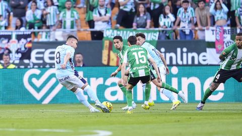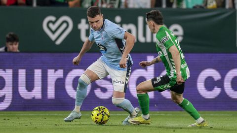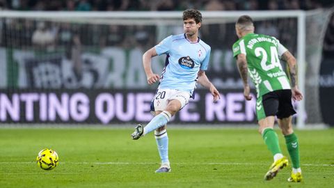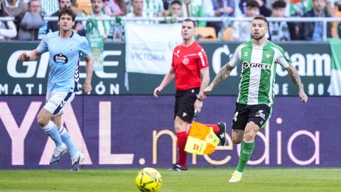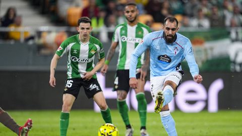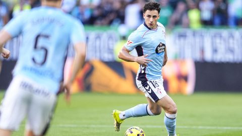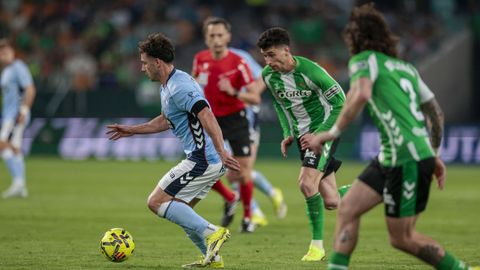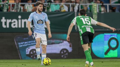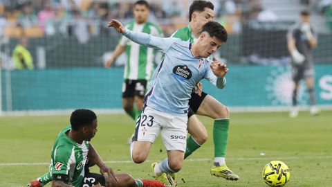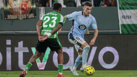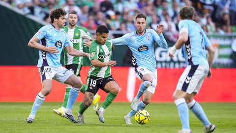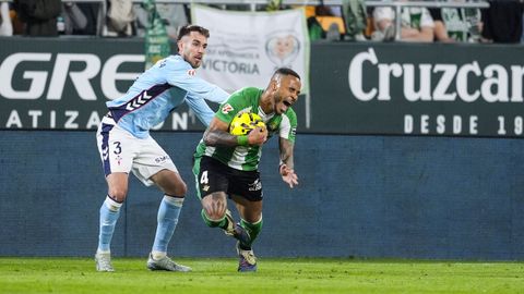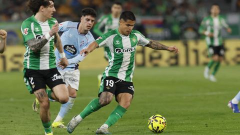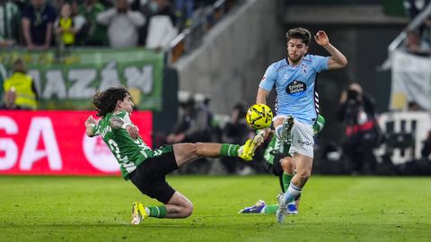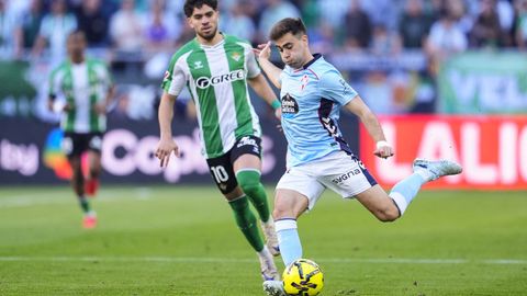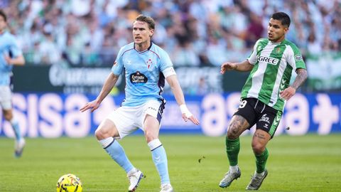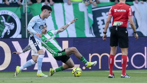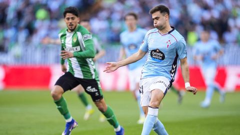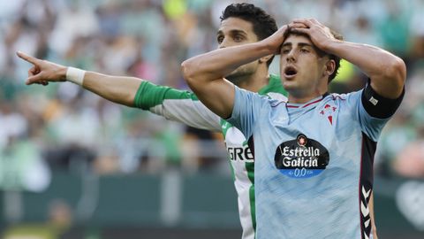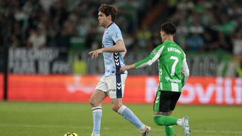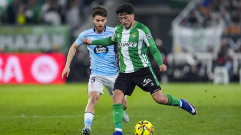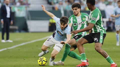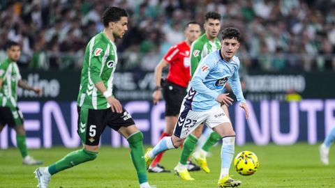 El tanto, a los tres minutos, reforzó el plan valiente del Celta, que se sintió cómodo quitándole el balón a un Betis que solo podía vivir de las transiciones. Por ese camino tuvo el cuadro vigués dos opciones para doblar la ventaja, pero no acertó en ninguna. Primero, con una salida de balón de Óscar Mingueza -en el carril izquierdo-, con Hugo Álvarez y Pablo Durán llevando el cuero al corazón del área, pero en esta ocasión, el disparo de Jutglà fue repelido por Álvaro Valles, que enmendó el error anterior. La siguiente la tuvo el tomiñés, que colocó mal el pie y cuyo disparo, con todo a favor tras un gran centro de Hugo Álvarez, no cogió portería. El ex de Porriño o Compostela fue un ser indetectable para el rival.