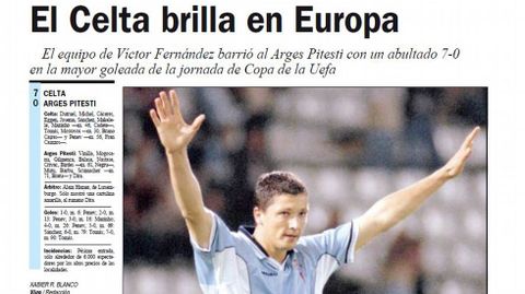 29 sep 2016 . Actualizado a las 10:42 h.1998: El Celta superaba por primera vez en su historia una eliminatoria europea tal día como hoy. Y no lo hacía de cualquier modo, sino que lograba una goleada para el recuerdo (7-0) ante el Arges Pitesti griego, al que había derrotado por la mínima (0-1) dos semanas antes en su campo.