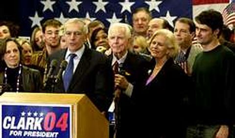 11 feb 2004 . Actualizado a las 06:00 h.El general Wesley Clark se va. Su entrada y salida en la política nortemericana no ha durado ni seis meses. «Este es el final de la campaña por la presidencia, pero no es el fin de nuestra causa», dijo ayer frente a sus seguidores en Little Rock, Arkansas, adonde se desplazó para hacer oficial su retirada, que había anunciado la noche anterior su portavoz Matt Bennett tras el estrepitoso fracaso en las elecciones de Tennessee y Virginia. «Yo creo que la principal razón es el gran ímpetu conseguido por Kerry tras sus victorias en Iowa y Nueva Hampshire. La montaña se hizo demasiado alta para subirla», había dicho Bennett para explicar el abandono. Clark salió elegantemente del terreno de juego con palabras positivas para sus rivales: «Son hombres buenos, buenos demócratas y buenos patriotas. Nuestro país está bien servido con ellos». Clark, de 59 años, se presentó a la nominación del Partido Demócrata con el apoyo, entre otros, del ex presidente Bill Clinton. Pero tras invertir todos sus esfuerzos en tratar de ganar en Tennessee y Virginia y quedar simplemente tercero en la lista, optó por hacer las maletas y darle portazo a sus aspiraciones presidenciales. El ex general retirado, ex comandante de la OTAN, responsable de dirigir a la organización en Kosovo, que contaba con su brillante pasado militar como moneda de cambio frente a un electorado obsesionado con la seguridad de su país, sólo había conseguido ganar en Oklahoma y por los pelos, y acumular 98 delegados frente a los 516 de Kerry. Sus orígenes sureños tampoco le sirvieron en estados del Sur, y ante la evaporación de los fondos, ha sido realista puesto que sin dinero en Estados Unidos es imposible remontar en unas primarias. Clark intentó de algún modo emular a Eisenhower, un presidente que cómo él fue alumno destacado de la academia militar de West Point (Nueva York). Sin embargo, el ideario de ambos es muy diferente ya que el único presidente con orígenes militares fue un republicano conservador mientras que él se define como un «demócrata y progresista puro».