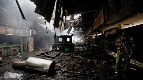 El siniestro, que comenzó al amanecer, estaba controlado hacia a las 10:00 horas (07:00 GMT), según el centro keniano de gestión de catástrofes. Durante varias horas pudieron apreciarse espectaculares llamas gigantescas y enormes nubes de humo en Jomo Kenyatta (JKIA). Según los testigos, se derrumbaron zonas enteras del aeropuerto y los equipos de socorro, que fueron desplegados rápidamente, se vieron por momentos carentes de recursos suficientes para controlar la situación. «No se ha informado de ninguna víctima en el incendio», ha declarado Nelly Muluka, portavoz de la Cruz Roja keniana.