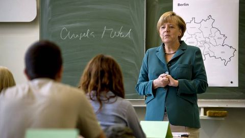 Merkel, crecida en territorio de la extinta Alemania comunista, se presentó ante los alumnos de una escuela secundaria del barrio de Prenzlauer Berg, en el antiguo sector este de Berlín y ahora uno de los barrios de la modernidad de la capital alemana.