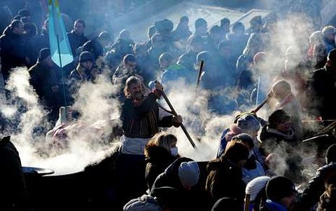 Después de haber movilizado a miles de personas los dos domingos precedentes, la oposición convocó para hoy una nueva gran manifestación. Anoche la plaza de la Independencia estaba abarrotada, con decenas de miles de personas coreaban «¡Dimisión!» y el grupo Okean Elzy ofrecía un concierto.