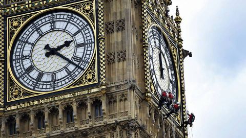 Los miles de turistas que cada día se acercan al Palacio de Westminster, sede del Parlamento británico y uno de los puntos más visitados de la capital británica, observarán durante esta semana a cuatro operarios suspendidos con cuerdas frente al icónico reloj. Los encargados de la limpieza dedicarán una jornada a cada una de las cuatro caras del Big Ben, en lo alto de la Torre de Isabel, de 95,7 metros.