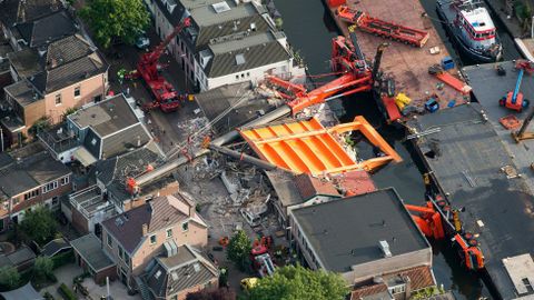 La búsqueda de víctimas cesó a las 11 de la noche y, según los medios de comunicación holandeses, en el accidente murió un perro. Las grúas se desplomaron hacia las cuatro de la tarde cuando sostenían juntas una enorme placa de cemento que debía ser instalada en el puente Reina Juliana, en plena renovación, que permite el paso de barcos y data de los años 50, según indicó ANP.