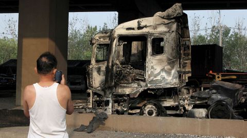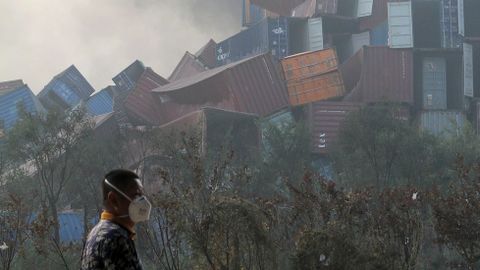 La densa columna de humo negro y el sonido de pequeñas explosiones volvió a poner en alerta a los ciudadanos que viven cerca del parque industrial de Binhai, en el puerto de Tianjin. Sun, un vecino de 27 años, salió de su casa para hacer algunas compras y tratar de recuperar la normalidad. «He ido a comprar comida y productos de limpieza y al volver una barrera de policías me ha dicho que es peligroso acceder a mi casa, que no puedo pasar», explica.
