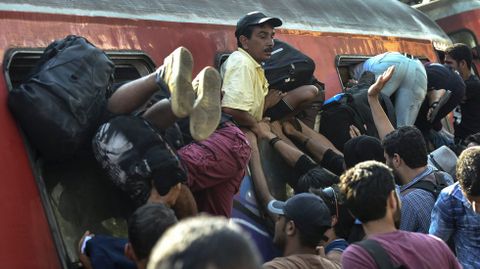 El camino es largo y conseguir espacio en los trenes complicado, así que muchos esperan en Tavanovce a sus amigos para seguir la ruta a pie juntos. Hamed, que quiere llegar a Alemania, espera en el andén a dos amigos de su ciudad natal, Derá, al sur de Siria. «Allí no se puede vivir; los aviones del Ejército nos lanzan a diario barriles bomba», afirma. Su viaje comenzó en Jordania, donde han quedado su mujer e hijos. Luego voló a Estambul para saltar a la isla griega de Kos, desde donde cogió un ferri a Atenas y, desde allí, un bus a Macedonia y un tren a Tavanovce. El periplo le costó 1.500 euros. Ahora le espera otro problema: la alambrada de 175 kilómetros que Hungría levanta en su frontera. «No importan las vallas, llegaremos a Europa», asegura Hamed en perfecto inglés. «Quiero reencontrarme con mi humanidad, la que perdí en Siria».