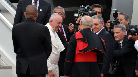 Francisco, el tercer pontífice que viaja al país caribeño, fue recibido en el aeropuerto por el presidente Raúl Castro y el cardenal Jaime Ortega, máximo representante de la Iglesia católica en la isla. Tras el recibimiento oficial, el pontífice se montó en el papa móvil para poder ser saludado por el pueblo cubano. En la isla caribeña pasará cuatro días y en ese tiempo se reunirá con Fidel Castro, pronunciará varios discursos, presidirá una misa en la plaza de la Revolución de La Habana y visitará las ciudades de Holguín y Santiago.