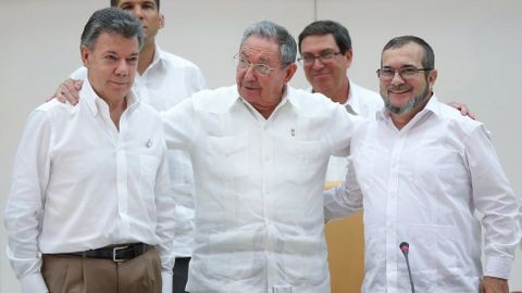 25 sep 2015 . Actualizado a las 05:00 h.Humberto de la Calle y Sergio Jaramillo explicaron ayer el alcance del acuerdo sobre justicia y víctimas firmado el día anterior en La Habana, en presencia del presidente de Colombia, Juan Manuel Santos, el jefe de la guerrilla de las FARC, Rodrigo Londoño Timochenko, y el presidente de Cuba Raúl Castro. Un acuerdo que De la Calle, el jefe de la delegación gubernamental colombiana, definió como la cuenta atrás «para que muera la guerra» al fijarse una fecha tope para el acuerdo final, seis meses, y otra para el desarme, 60 días.