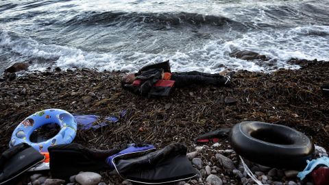 Quince refugiados, entre ellos dos niños y cuatro bebés, se ahogaron ayer en dos naufragios frente a las islas griegas de Samos y de Farmakonisi. A diario cuerpos de ahogados aparecen varados en la costa de Lesbos, con el menor de la fotografía. Desde el lunes, el Egeo se cobró la vida de 60 inmigrantes. Veintiocho eran niños.