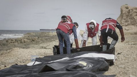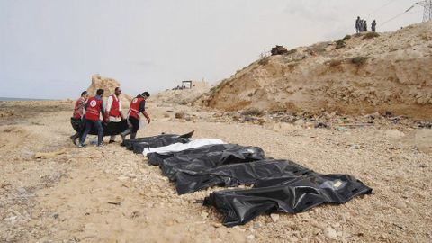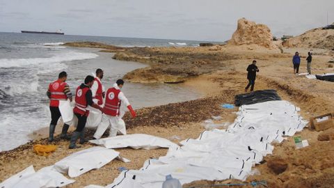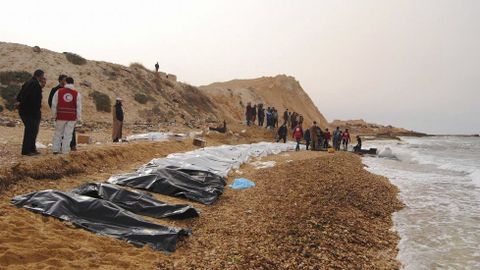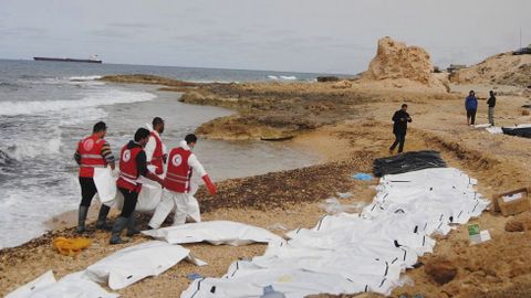 22 feb 2017 . Actualizado a las 05:00 h.Cadáveres de inmigrantes volvieron a amontonarse este martes en una playa de Libia. Una larga hilera de 74 cuerpos cubiertos por bolsas de plástico blancas y negras alineados en la arena de la costa de la ciudad de Zawiya, a 45 kilómetros al oeste de Trípoli. Muy cerca se encontró un bote hinchable rajado. La precaria embarcación había zarpado el sábado de la vecina Sabratha con 110 personas. Nada se sabe de los 36 viajeros restantes. Los traficantes se llevaron el motor de la embarcación y la dejaron a la deriva, según contó un funcionario local a Joel Millman, un portavoz de la Organización Internacional para las Migraciones (OIM).