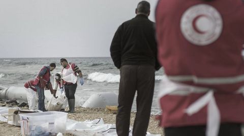 Habitantes de Zawiya descubrieron la lancha encallada en la playa, con varios cadáveres de inmigrantes todavía dentro, y llamaron a los equipos de la Media Luna Roja libia. Los cooperantes pasaron seis horas recuperando cadáveres, aún así «algunos siguen flotando en el agua sin que podamos llegar a ellos», recogía AFP por la tarde del Facebook de esa oenegé en Zawiya. Se quejan de que no disponen de medios y que sus equipos están formados por voluntarios: «No tenemos vehículos apropiados para transportar los cuerpos o cementerios donde inhumarlos».