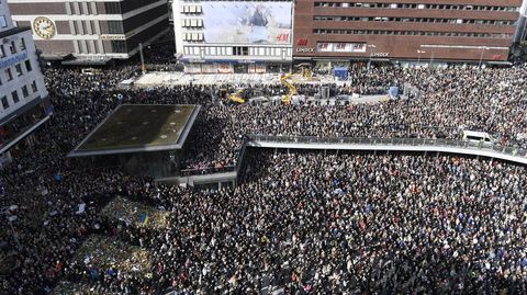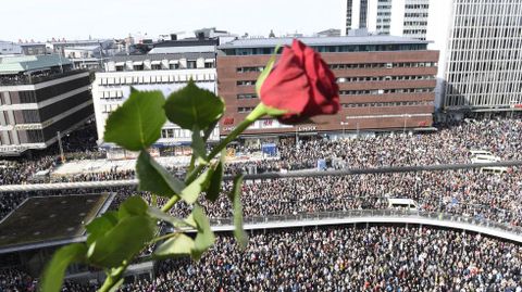 Toda medida es insuficiente para prevenir actos como el ocurrido el pasado viernes en Estocolmo. Según el primer ministro sueco, Stefan Löfven, el ataque le ha generado «mucha frustración porque el individuo debía haber sido expulsado del país», a lo que ayer añadió que «Suecia tiene que hacer cumplir las órdenes de expulsión». «Algunos no volverán a oír las voces de sus seres queridos otra vez», argumentó en alusión a las familias de las víctimas mortales del atentado. Quienes tuvieron también un recuerdo para los que perecieron arrollados por el camión fueron las miles de personas que se acercaron a la plaza Sergels para enviar un mensaje de paz. Horas antes, a escasos metros, los grandes almacenes en los que se empotró el camión tenían previsto a volver a funcionar con normalidad, pero pospusieron la apertura tras una polémica surgida por la idea de vender los productos dañados a mitad de precio.