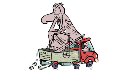 El viernes, finalmente, el Tribunal Supremo se rindió y llamó a una empresa de mudanzas para que fuesen a llevarse a la Justicia. Se corrió la voz por Daca y en el exterior del tribunal se concentró una pequeña multitud con pancartas para intentar impedirlo, pero ya era tarde. La policía los dispersó a palos mientras, dentro, unos currantes ya estaban retirando a la diosa de su pedestal con una grúa. La envolvieron en plástico de burbuja y cinta aislante como si fuese un mueble viejo, y luego la metieron en un vehículo. Así salió la Justicia del Tribunal Supremo de Bangladesh: por la puerta de atrás, atada y tirada en el suelo de una camioneta como si se la llevasen secuestrada, rumbo a un destino desconocido.