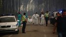 Los camiones de bomberos no tuvieron problemas para superar los troncos de eucalipto que cortaron las pistas, pero los forestales tuvieron que aplicarse a fondo hasta bien avanzada la tarde del domingo para despejarlas y permitir el acceso de ambulancias y grúas para proceder a la tétrica procesión de vehículos calcinados.