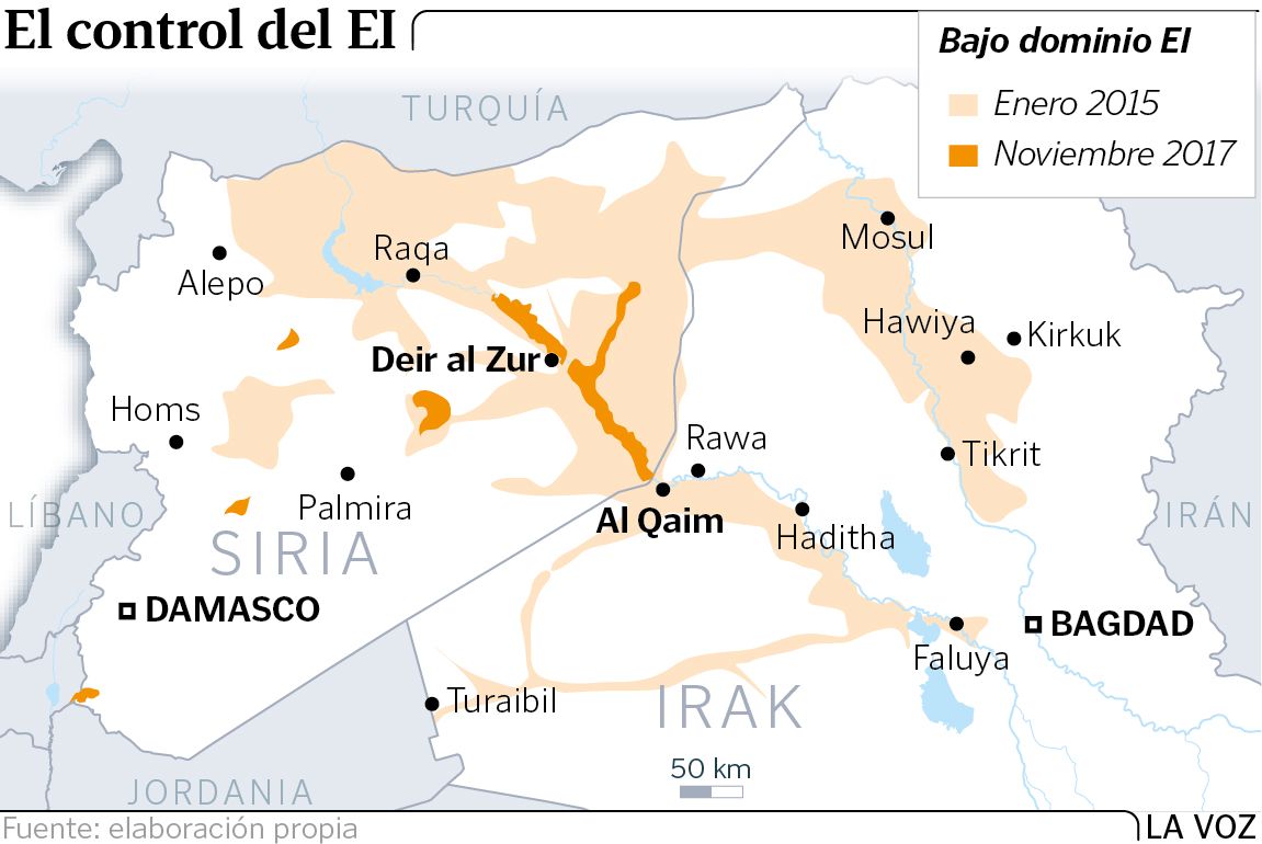 Deir al Zur, población de que antes de la guerra tenía más 200.000 habitantes y era el centro de la industria petrolífera, se ha convertido en la segunda gran victoria para el presidente Bachar al Asad en esta guerra, tras recuperar en diciembre el control de Alepo, pero es el primer éxito de relevancia de sus fuerzas ante los seguidores del califa. La batalla por Deir al Zur supone un refuerzo moral para el Gobierno ya que una parte de la ciudad permaneció fiel a Damasco y el EI la tuvo cercada desde el 2014 hasta septiembre, cuando se logró romper uno de los cercos más largos de la guerra de Siria; 93.000 civiles, según cifras de las Naciones Unidas, subsistieron en condiciones extremadamente difíciles gracias a la ayuda que les lanzaban desde aviones. Es también el primer gran éxito de Rusia en la guerra contra el EI. La decisión de Vladimir Putin de entrar en la guerra siria en el 2015 marcó un punto de inflexión y Al Asad empezó a recuperar terreno hasta convertirse en el ganador estratégico del conflicto. A punto de concluir la fase militar, los rusos trabajan en la estabilización política a través de las reuniones periódicas que organizan en Astaná (Kazajistán), más efectivas que las de la ONU en Ginebra. La situación actual de Deir al Zur no difiere mucho de la del resto de ciudades liberadas de manos del EI. El uso masivo de artillería y los bombardeos de aviación han dejado inhabitable la mayor parte de los edificios y no será sencillo devolver los servicios mínimos para que los civiles puedan regresar. Los escombros, los bloques de viviendas convertidos en esqueletos y la ausencia total de vida son la herencia que dejan tres años de califato. Si la caída de esta ciudad «constituye la etapa final» del EI en Siria, lo mismo se puede aplicar a Irak tras la entrada del Ejército iraquí y las milicias chiíes en Al Qaim y la liberación del puesto fronterizo de Husayba, punto de paso estratégico para los movimientos del califato entre Mosul y Raqa desde el 2014.