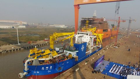 La embarcación, bautizada Tian Kun Hao, es capaz de cavar 6.000 metros cúbicos por hora, el equivalente de tres piscinas de medidas estándar, según el diario.