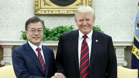 La presencia del presidente de Corea del Sur en Washington tenía por fin, precisamente, pulir los detalles del encuentro programado entre Trump y Kim Jong-un en Singapur. «Nunca se sabe lo que ocurre con los acuerdos», deslizó el estadounidense. Horas antes y a diferencia de lo dicho por el magnate, el consejero de Seguridad Nacional de Corea del Sur, Chung Eui-yong, aseguraba que «hay un 99,9 % de posibilidades de que se mantenga la cumbre» en la fecha y el lugar marcados previamente.