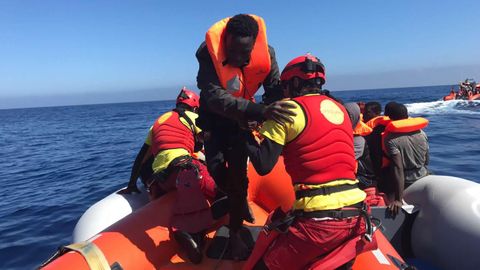 «Les saludamos, intentamos que sepan que no somos enemigos, que no somos policías, que no somos más traficantes que les vamos a extorsionar. Somos los que vamos a salvar un poco la situación, porque no somos héroes», relata el joven. Una vez a bordo, comienzan las idas y venidas. «El mayor trabajo». Se les proporciona mantas, agua, comida (si cuentan con ella a bordo), ropa. Y, sobre todo, se les hace entender que la siguiente parada es un puerto seguro. Que una etapa se ha cerrado, pero que comienza otra nueva. Una etapa muy dura. Un intento de calma, con la humanidad de fondo. Una humanidad que, afirma Sergio, «les lleva faltando meses, o muchos años». Horas de deriva, y muchos sueños, llenan ahora su mochila.