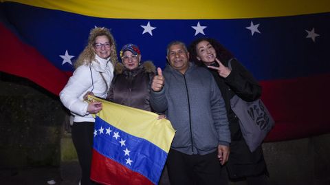 Numerosos integrantes de la comunidad venezolana en Pontevedra se concentraron este sábado en la Praza da Peregrina, ante una gran bandera del país sudamericano desplegada delante del santuario pontevedrés presidiendo una reunión donde hubo lágrimas de alegría, consignas contra Maduro, discursos de felicitación, abrazos y muchas, muchas fotos y sonrisas. El futuro es incierto para Venezuela, pero para muchos de sus ciudadanos residentes en la ciudad del Lérez se abre una nueva nueva etapa sin Maduro al frente que les llena de ilusión y esperanza.