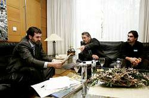 14 mar 2006 . Actualizado a las 06:00 h.JOSÉ RAMOS Y XOSÉ ANTÓN LEDO. El alcalde se reunió con Quintana el lunes acompañado por el responsable local del BNG de Taboada. La Xunta divulgó dos fotos del encuentro, esta en la que aparecen los tres y otra en la que sólo salen el vicepresidente y el alcalde. La fundación San Rosendo no pondrá ninguna traba a la posible traspaso a la Xunta del proyecto de la residencia de ancianos de Taboada. Lo dijo ayer Benigno Moure, el presidente de esta entidad, que, sin embargo, dice tener serias dudas de que el Ayuntamiento vaya a lograr que el Gobierno gallego asuma el acabado de las obras y la gestión de la futura residencia. En cualquier caso, si realmente existe esta posibilidad, Ben igno Moure anticipa que ellos no serán un obstáculo. «Lo que a nosotros nos interesa es que se hagan residencias para la tercera edad, y si las hace la Xunta, estupendo», afirma. Para ellos no sería ningún trauma. «Tenemos -dice- solicitudes de sesenta o setenta municipios». En el caso de Taboada, la fundación y el Ayuntamiento tienen firmado un convenio que incluye la cesión a San Rosendo del terreno. Además, las obras ya han empezado, contratadas por la fundación. Pero nada de esto será un problema. Benigno Moure dice estar dispuesto a negociar con la mejor voluntad para que no haya trabas técnicas que bloqueen una posible cesión del proyecto de sus manos a las de la Xunta. El presidente de la fundación San Rosendo hizo estas declaraciones a primera hora de la tarde de ayer, y dijo haberse enterado de la posible intervención de la Xunta en el proyecto por la llamada de este diario. Ayer por la mañana, el alcalde trataba de sacar hierro a la operación, y afirmaba que lo que el Ayuntamiento quiere es que el proyecto de la residencia salga adelante, así tenga que acabarlo la Xunta o la fundación con los 500.000 euros de subvención que reclama para terminar el trabajo. Pase lo que pase, José Ramos dejaba claro su agradecimiento a la entidad que dirige Benigno Moure: «Teño que ser respetuoso coa fundación San Rosendo porque son consciente de que eles nos botaron unha man cando aceptaron a nosa petición tendo tantas ofertas como sei que teñen».