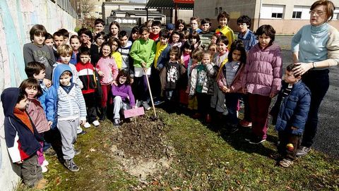 1Esta semana no habrá quedado ni un centro educativo sin su nuevo árbol. La conmemoración del día internacional del árbol arrancó el miércoles y se prolongó hasta ayer mismo, el día que colegios e institutos empiezan las vacaciones de Semana Santa. El colegio Monte Baliño, de Ferreira de Pantón, es uno de los que apuraron hasta el final. Y además combinaron dos celebraciones, porque aprovecharon para recordar que esta semana también era el día forestal mundial. Los chavales de este colegio plantaron ayer un abedul y leyeron cuentos que tienen el agua como protagonista.