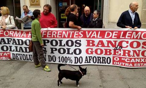 Una treintena de personas se concentraron ayer durante una hora frente a la oficina central de Novagalicia Banco en Monforte. Se trata de una nueva movilización de la plataforma comarcal de compradores de participaciones preferentes.