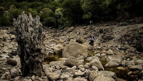 Reaparece un paisaje que normalmente permanece oculto bajo las aguas del embalse de Santo Estevo