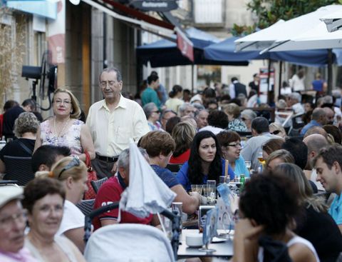El precio. Lo que les gusta es el precio. El de un café, sin ir más lejos. Un vecino de Pontevedra que disfrutaba de la sombra en una terraza de la calle Cardenal, mostraba su sorpresa por lo poco que le iba a costar lo que estaba tomando. «Este café me va a costar 1,10 euros, cuando en Pontevedra te clavan 1,50».