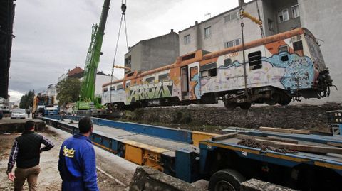 Trasladado a Vedra uno de los vagones del viejo automotor que lleva años aparcado en la estación de Monforte