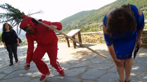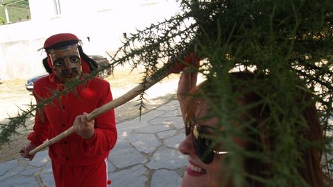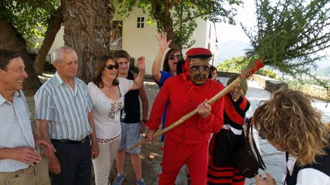 Otra romería de los Remedios que se celebró también ayer fue la de la parroquia de A Ermida -en el municipio de Quiroga-, que figura entre los festejos de mayor interés etnográfico de la provincia gracias a la presencia de los peculiares personas conocidos como las Pampórnigas y el Meco. Esta vez tampoco faltaron a su cita anual y, tal como manda la tradición, el Meco se dedicó a perseguir a los romeros con una escoba de tojos frente a la puerta de la iglesia. Y como es habitual, también se agachó para recoger las monedas que le lanzaban al suelo y para recibir las collejas que le propinaban en la nuca, protegida por una sólida almohadilla. Lo mismo que ha venido haciendo con incontables generaciones.