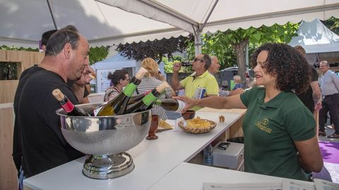 Tomé dio una palabras tras una actuación del grupo Habelas Hainas y antes del emotivo pregón que ofreció la cantante y violoncelista monfortina Rosa Cedrón. A las seis y media de la tarde, cuando se inauguró el festival, los nubarrones se cernían sobre el paseo del Malecón. La lluvia se lo puso difícil el día antes a los operarios encargados del montaje, pero ayer respetó la puesta de largo de la muestra vitícola. El secretario de los socialistas gallegos, Gonzalo Caballero, se acercó a Monforte para participar en el acto inaugural, en el que también estuvo por otro lado el presidente del consejo regulador, José Manuel Rodríguez.