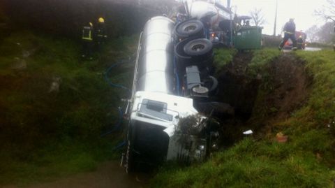Fue el propio camionero el que dio la voz de alarma. En cuanto pudo salir de la cabina, fue a la casa más próxima y pidió a los vecinos que avisasen a los servicios de emergencia. Eran las once y diez de la mañana y el camión cisterna con el que había recogido leche en granjas de la zona acababa de salirse de la carretera que une las aldeas de Susá y Bouzoa, en un puente cercano al lugar de Sernande.
