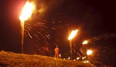 TRADICIÓN ANCESTRAL Los sostenedores de estos actos relacionan la «queima» con antiquísimos ritos precristianos Con puntualidad británica, el fuego rodeó de nuevo el castro de Castelo el viernes por la noche. Medio centenar de «fachas», colocadas en fila a lo largo del perímetro de la loma que preside este pueblo del municipio de Taboada, fueron encendidas, reviviendo una tradición cuyos sostenedores relacionan con antiquísimos ritos precristianos. La «queima das fachas» de Castelo reunió a centenares de vecinos y curiosos llegados de diferentes puntos de la comarca y del resto de Galicia.
