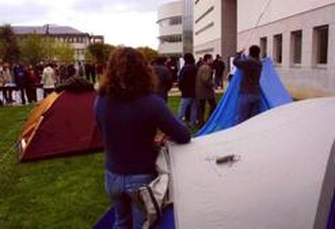 12 nov 2001 . Actualizado a las 06:00 h.La Coordinadora Xeral contra la LOU del Campus de Lugo comenzó ayer una acampada junto a la Biblioteca Intercentros para protestar por la aprobación de la nueva norma universitaria. «Queremos manifestarnos porque consideramos que é unha reforma de tal calibre que non debe partir da iniciativa dun só grupo parlamentario que a impón a rodillo», señalaron en un comunicado los miembros de la coordinadora. Ataviados con sacos de dormir y con víveres para tres días, los participantes en la acampada soportaron el frío lucense con un magosto celebrado a últimas horas de la tarde de ayer. Apoyos Las actividades que desarrolla la coordinadora del campus recibieron el apoyo de Xuventudes Socialistas, las juventudes de Izquierda Unida y la Xuventudes Comunistas, así como los sindicatos UGT, CIG y CC OO. Bruno Vázquez, de XX SS, señaló que la ley perjudica «á Universidade, á sociedade e ó ensino medio, xa que entra a lei do mercado no ensino público».