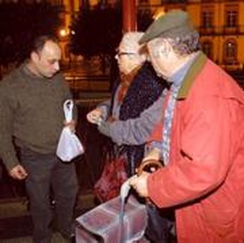 17 ene 2002 . Actualizado a las 06:00 h.La iniciativa de la Sociedad Protectora de Animales, en colaboración con diversas entidades y empresas de la ciudad, de recuperar la tradicional subasta de San Antón Lacoeiro, consiguió reunir en la plaza Maior a más de trescientos lucenses de todas las edades. Por una parte se concentraron los dueños de animales de compañía. El sacerdote Francisco López fue el encargado de dar la bendición. A continuación los niños cobraron protagonismo, cuando subieron al templete de la plaza y recibieron diversos regalos y comentaron en público el cariño que tienen por su perros, gatos e incluso tortugas. El concejal de Medio Ambiente, Marcos Cela, y el de Seguridad Ciudadana, Francisco Fernández Liñares, fueron algunos de los encargados de entregar los regalos a los niños. Pero el momento más esperado por los asistentes fue la subasta de productos típicos del cerdo y de la época, como chorizos, lacones, butelos y costillas. Algún matrimonio se acercó al palco con el carrito de la compra, a la espera de conseguir buena carne y a buen precio. Doce años El locutor de radio Paco Rivera hizo de maestro de ceremonias. Aunque el acto tuvo varios momentos de improvisación, el presidente de la Protectora, Javier García Calleja, considera que fue una primera experiencia, tras doce años sin celebrarse el San Antón Lacoeiro. «O 17 de xaneiro, San Antón verdadeiro, e si a súa festa lle fan, o 13 de San Xoán», sentenció el concejal nacionalista Marcos Cela.
